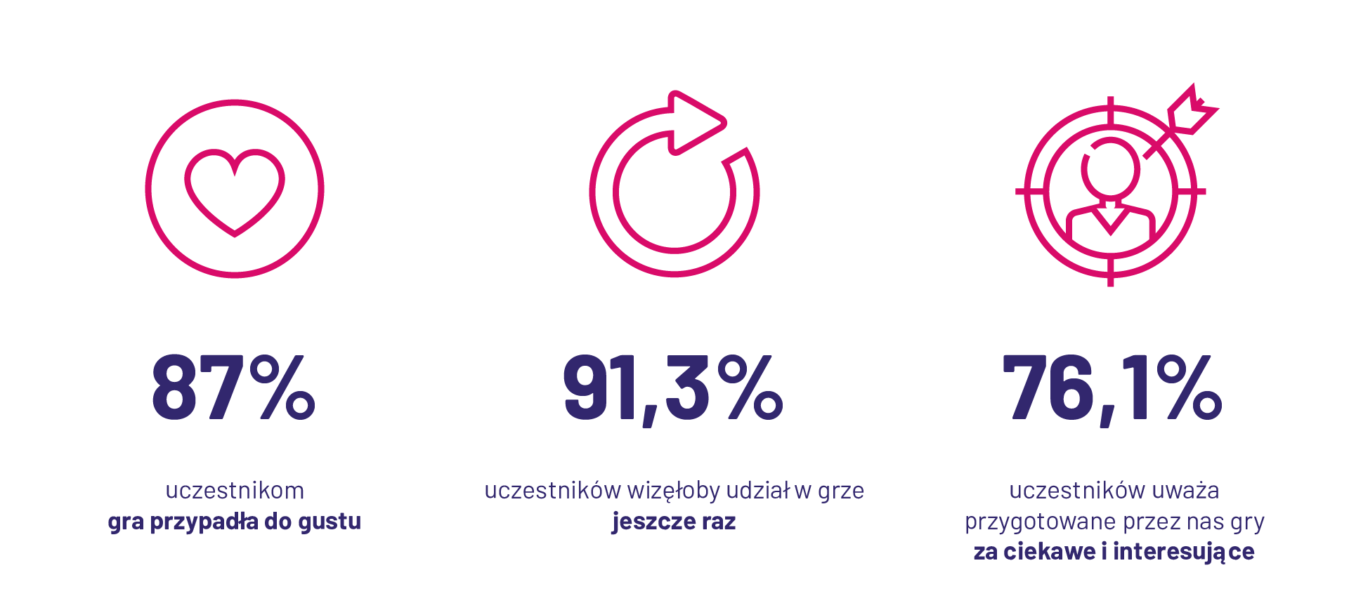 Czy taka forma szkolenia przypadła nastoletnim liderom? Chyba tak! Zobaczcie tylko wyniki przygotowanej przez nas ankiety ewaluacyjnej gry.