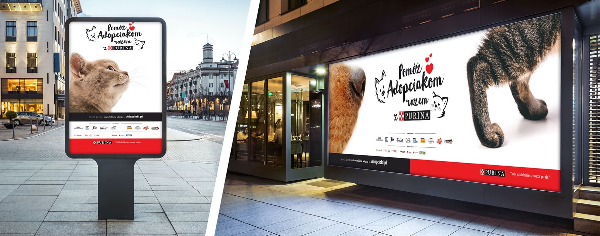 Akcję wspieraliśmy również działaniami OOH i instore. Adopciaki pojawiły się w kilku miastach i zagościły na sklepowych półkach w formie standów produktowych, wobblerów, shelfstoperów i naklejek podłogowych. Działania trade marketingowe, skupiały się na poinformowaniu konsumentów o wsparciu jakie marki PURINA zapewniają fundacji adopciaki.pl w ramach kampanii. PURINA zdecydowała się na przekazanie 1% dochodu ze sprzedaży wszystkich swoich produktów na działanie programu.